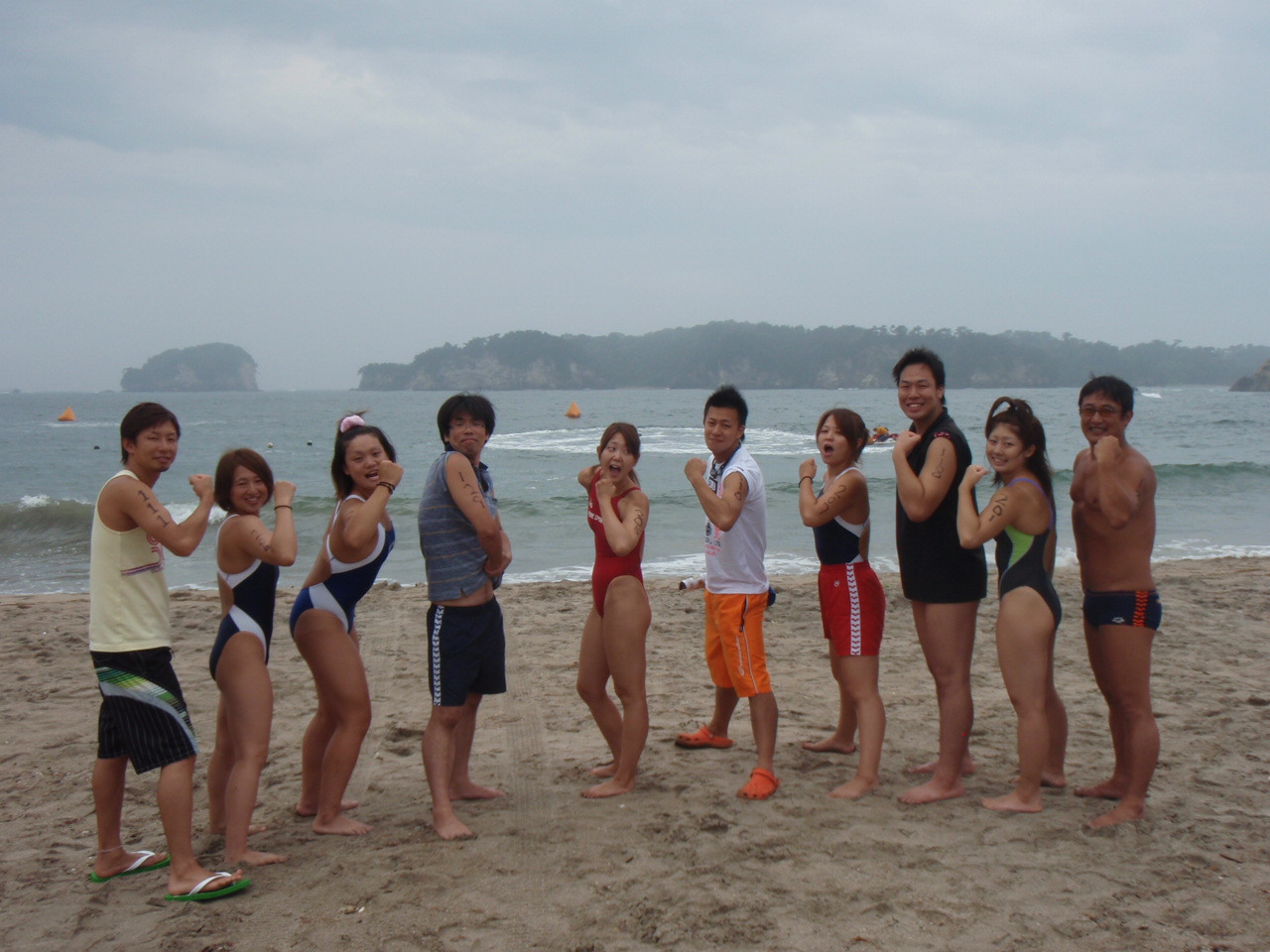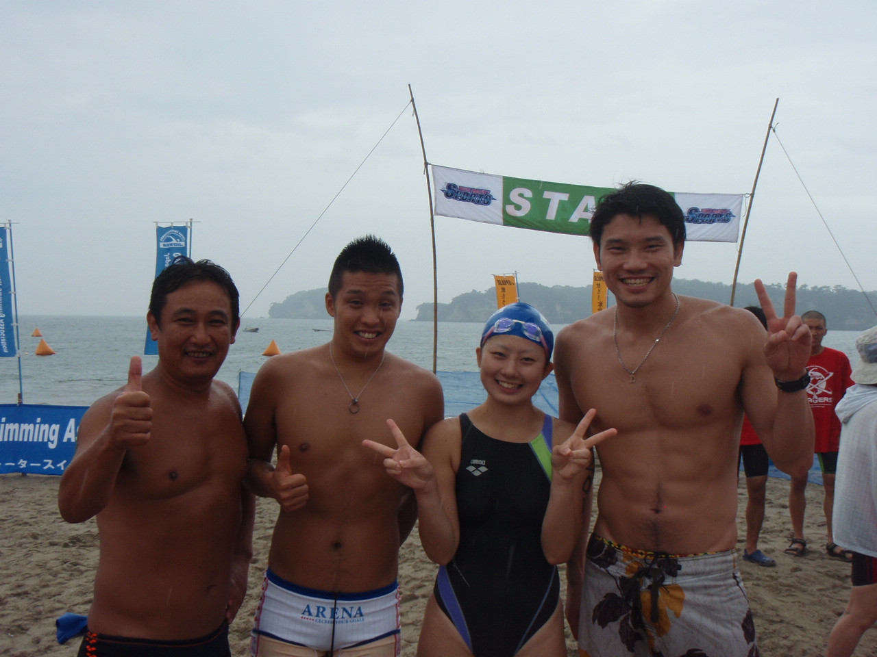 福島のスナッチコーチと行きの車の中で棄権して応援団になろうか・・とか言ってたんですが、海につくとやっぱり泳ぎたくなっちゃうんですよね。