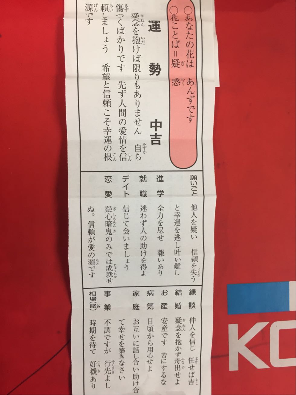 疑念を抱けば限りもありません。先ず人間の愛情を信頼しましょう。希望と信頼こそ幸運の根源です。という結果がでました。