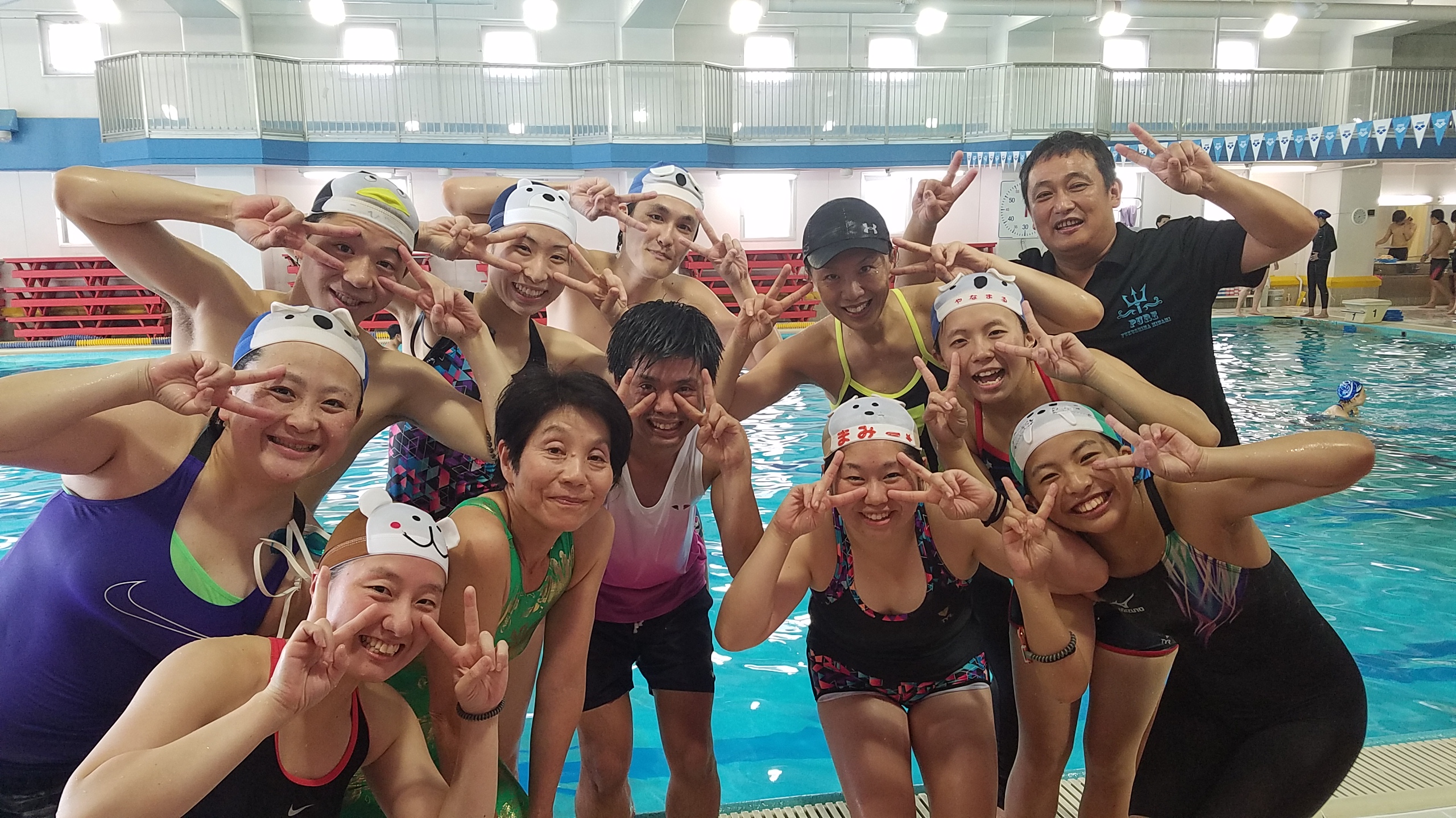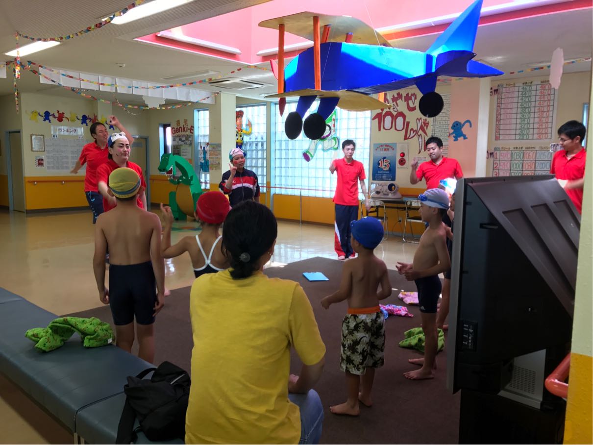 プールに入るコーチも、入らないコーチもみんなでピュアオリジナル体操♪
