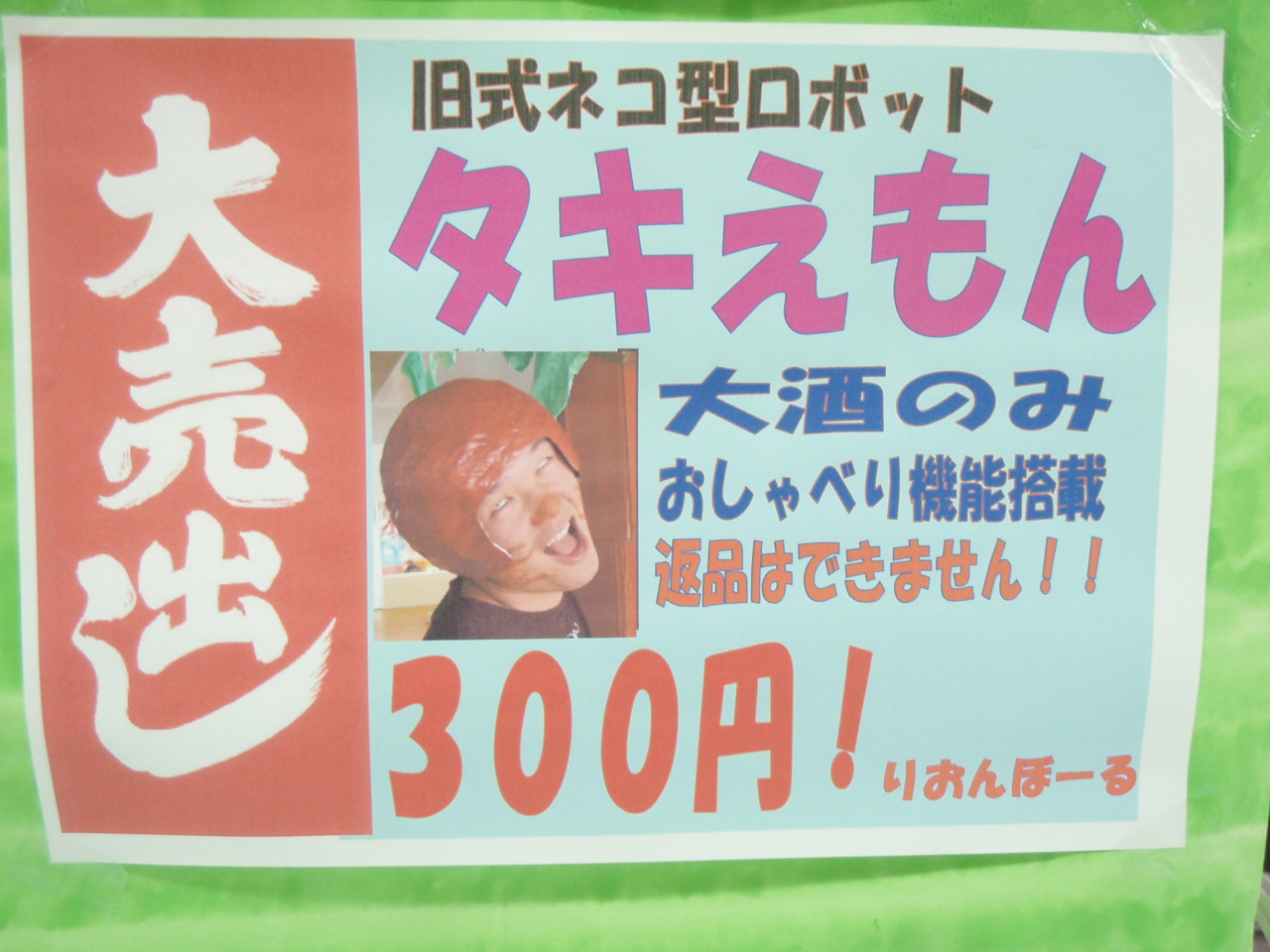 そしてなんと今回、タキえもんご購入のかたには、さらに「ナベえもん」もお付けしちゃいます!これであなたの部屋はお笑い劇場に大変身。今すぐりおんぼーるへ!