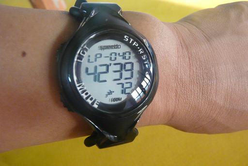 そこでネットで調べて買ったのが、この腕時計。ラップ回数をちゃんと表示してくれるので、ターンのときにポチっと押すだけでOK!あとはな~んにも考えずにの~んびり泳げばいいだけです。