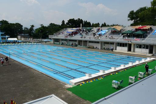 福島県は屋内の50mプールがないので、いつも夏は屋外のプールです。