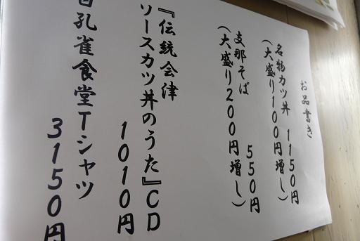 なぜかお品書きに「ソースカツ丼のうた」のCDと「白孔雀食堂のTシャツ」も書かれていまして。このあたりはフジジ的に好きですね。
