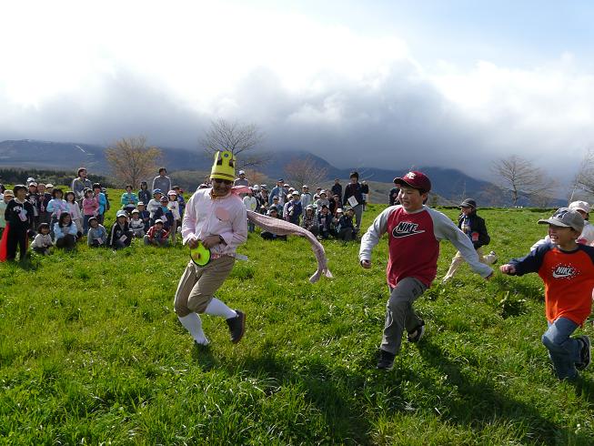 そして午後はパン作り。と牛乳工場見学。自分たちオリジナルのパンをつくり、子供たちの想いがこもったパンが完成しました!!午後の後半は天気も少しずつよくなり、外でかけっこをおこないました。子供たちがタッキーとフジジを捕まえるゲームをして、タッキーも久しぶりに本気で走りました。そして見事転びました↓。。。。