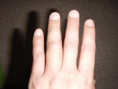 ゴールして自分の手を水中で見たら、左手の薬指が小指に重なっているというか、クロスしていまして、あらら・・と思ったんですが戻らない。急いで水中で薬指をつまんで戻しました。よっぽど激しくタッチ版にぶつかったんですね、痛くはなかったのですが皮膚も少しやられて出血してたもんで急いで医務室へ。テーピングで固定してもらいました。「靭帯やられてると思うから、明日整形外科で写真とってもらったほうがいいよ」なんて言われました。