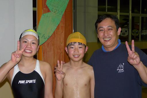 そしてついにやってくれたんです。昨日よりも2秒も速いタイムで泳ぎました。フジジ久しぶりに感動です。担当のピロピロとユウスケとフジジと記念写真。やっぱり子どものスクールはいいな。感動があるもんな。最近デスクワークが多く、ゲンキのない状態が続いていましたが、ユウスケのおかげで元気になりました。