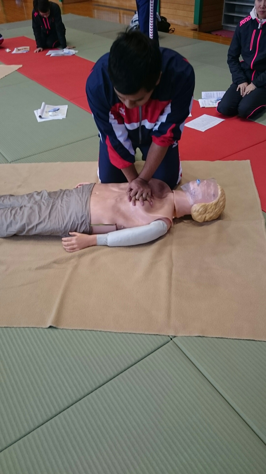 先日の日曜日に大河原で救急蘇生講習会に行って来ました。万が一の事故に備えて、人工呼吸やAEDの使い方を学びました。事故がない事が何よりの事ですが、危険と隣り合わせな環境ですのでコーチ達は講習会に参加しております。
